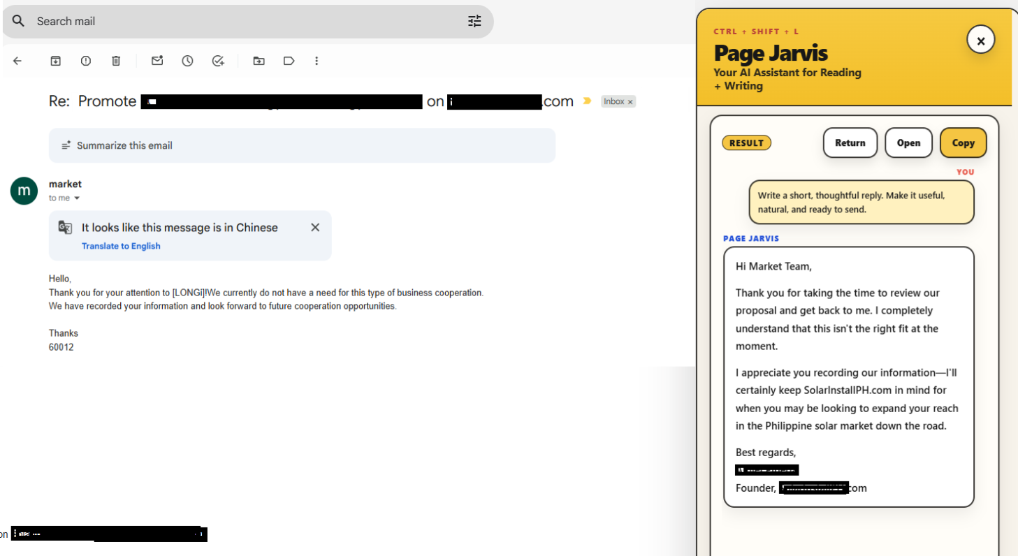 Page Jarvis can help you turn rough thoughts into cleaner emails, replies, comments, and posts without leaving Gmail, LinkedIn, or other browser-based writing surfaces.